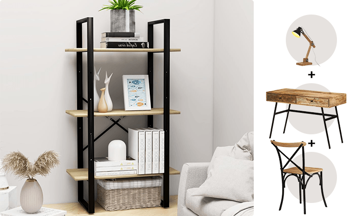 Los muebles y accesorios de tu elección pueden adaptarse a cualquier estilo de interior. Una de las opciones más populares es diseñar una biblioteca doméstica industrial. Para ello, céntrate en muebles y adornos que combinen con una biblioteca industrial. Comienza por buscar estanterías de estilo industrial: estanterías de metal en negro, gris y blanco que son resistentes y están a la moda. Decora tu escritorio con una encantadora lámpara de escritorio que combina madera maciza de mango y metal. Al diseñar una biblioteca industrial para el hogar, prueba varios accesorios y muebles que enfatizan la frescura del estilo industrial.